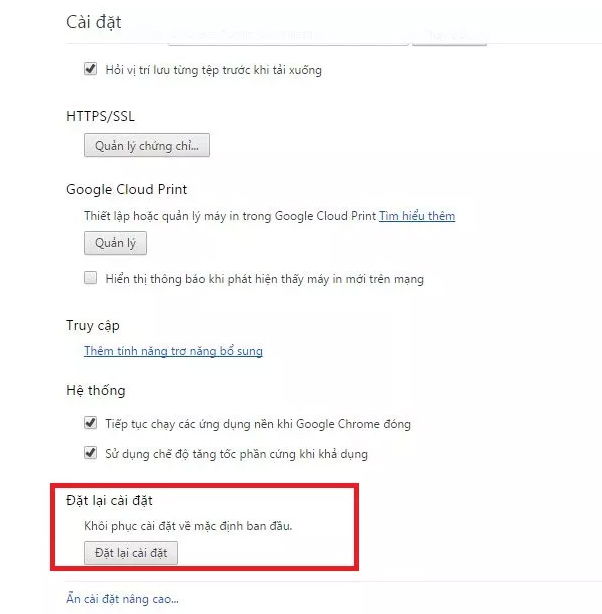 3. Đưa cài đặt của trình duyệt về trạng thái ban đầu